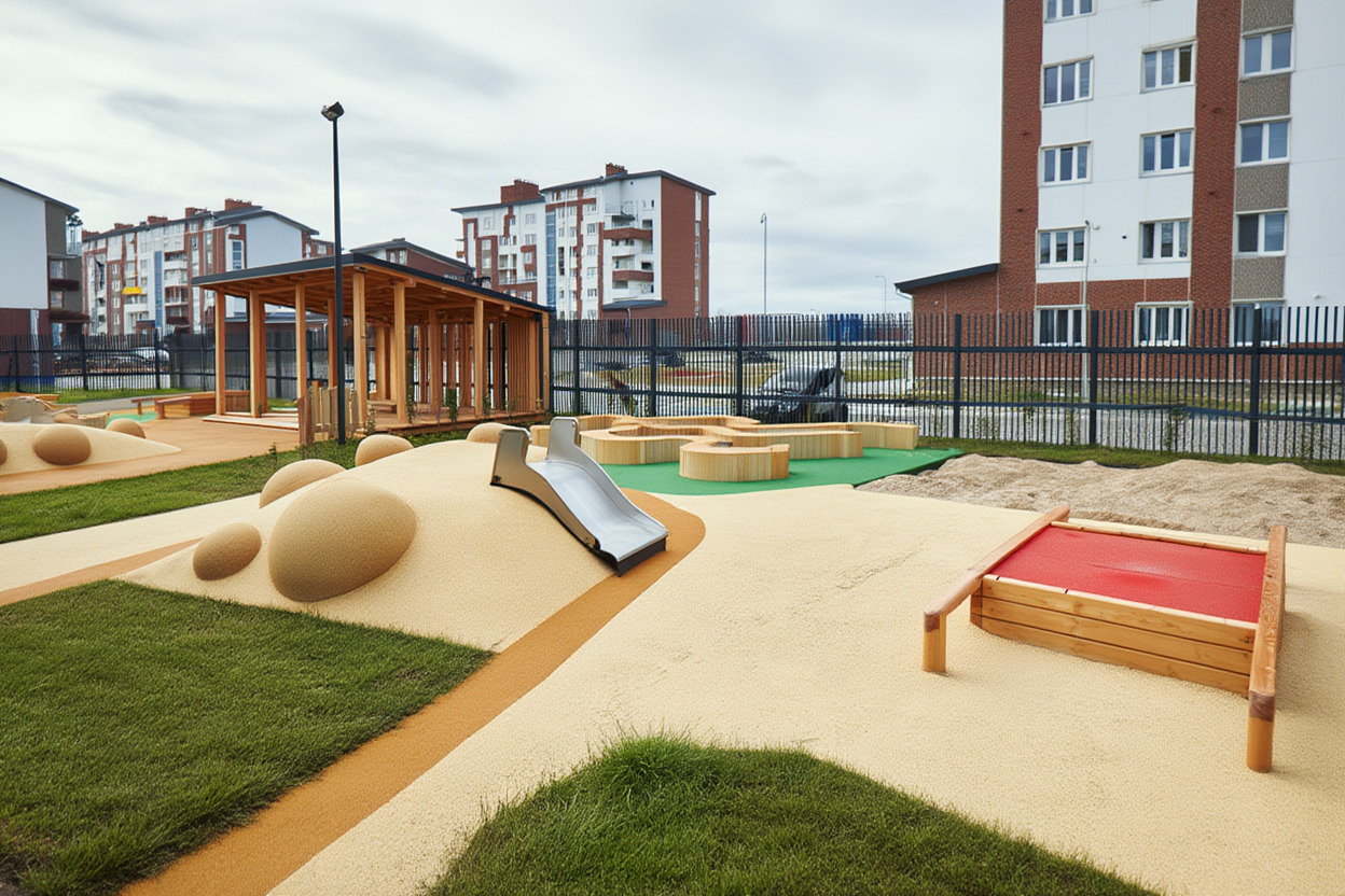Геопластика представляет собой специально спроектированные рельефные конструкции, которые создают интересные игровые пространства с холмами, спусками и подъёмами. Эти элементы не только украшают площадку, но и обеспечивают детям разнообразные возможности для активного отдыха.
